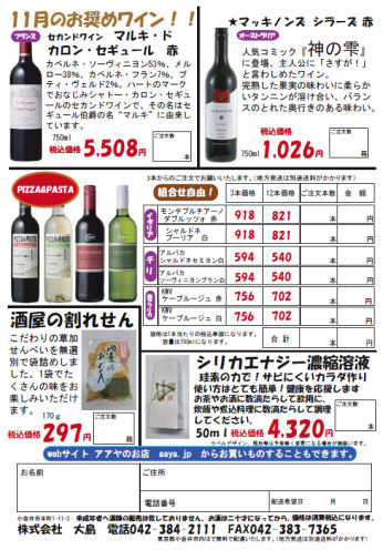 2017年10月26日11月のお薦め商品をご紹介させていただきます。
